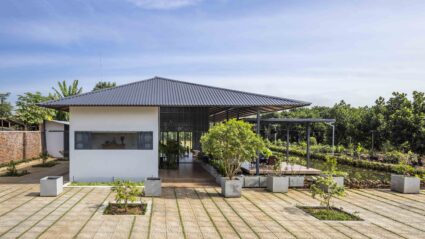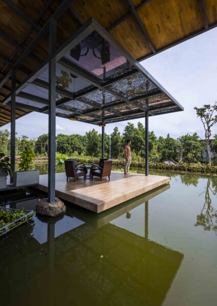All these solutions aim to create a structure that adapts to the hot and dry climate of Southeast Vietnam, while minimizing human impact on the environment in line with a sustainable, self-sufficient farmstay model.