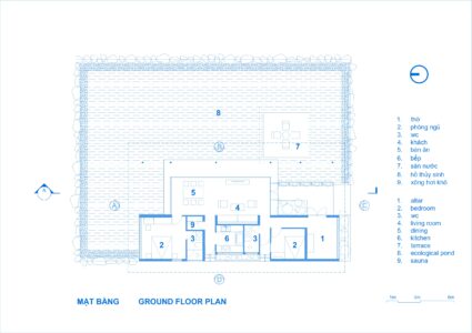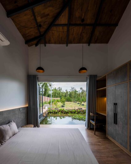 The homeowner is a “new generation” farmer who applies extensive scientific and technical research to agricultural production, differing greatly from traditional methods. Therefore, during the development phase, we collaborated closely to discuss water circulation, energy efficiency, and how the house functions in harmony with the surrounding orchards and pond. We planned a functional layout that seamlessly integrates accommodation, relaxation, and agricultural activities.